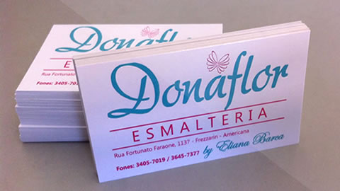 Apresentação eficaz, impressão somente frente ou frente e verso, verniz localizado ou total, cantos arredondados, espessura do papel, entre outros tipos de acabamentos.